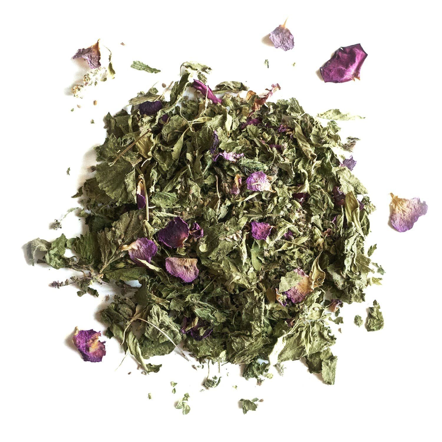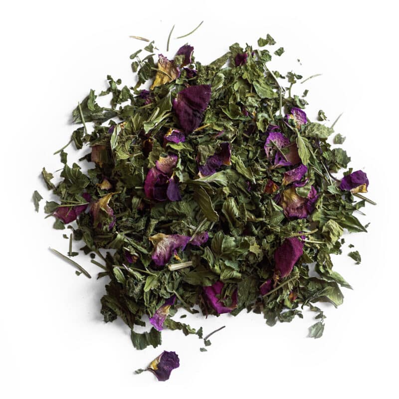 Anis vert (Pimpinella anisum) – fruit*, basilic citron (Ocimum citriodorum) – feuilles, fleurs*, rose (Rosa gallica) – fleurs*, ortie (Urtica dioica) – feuilles*