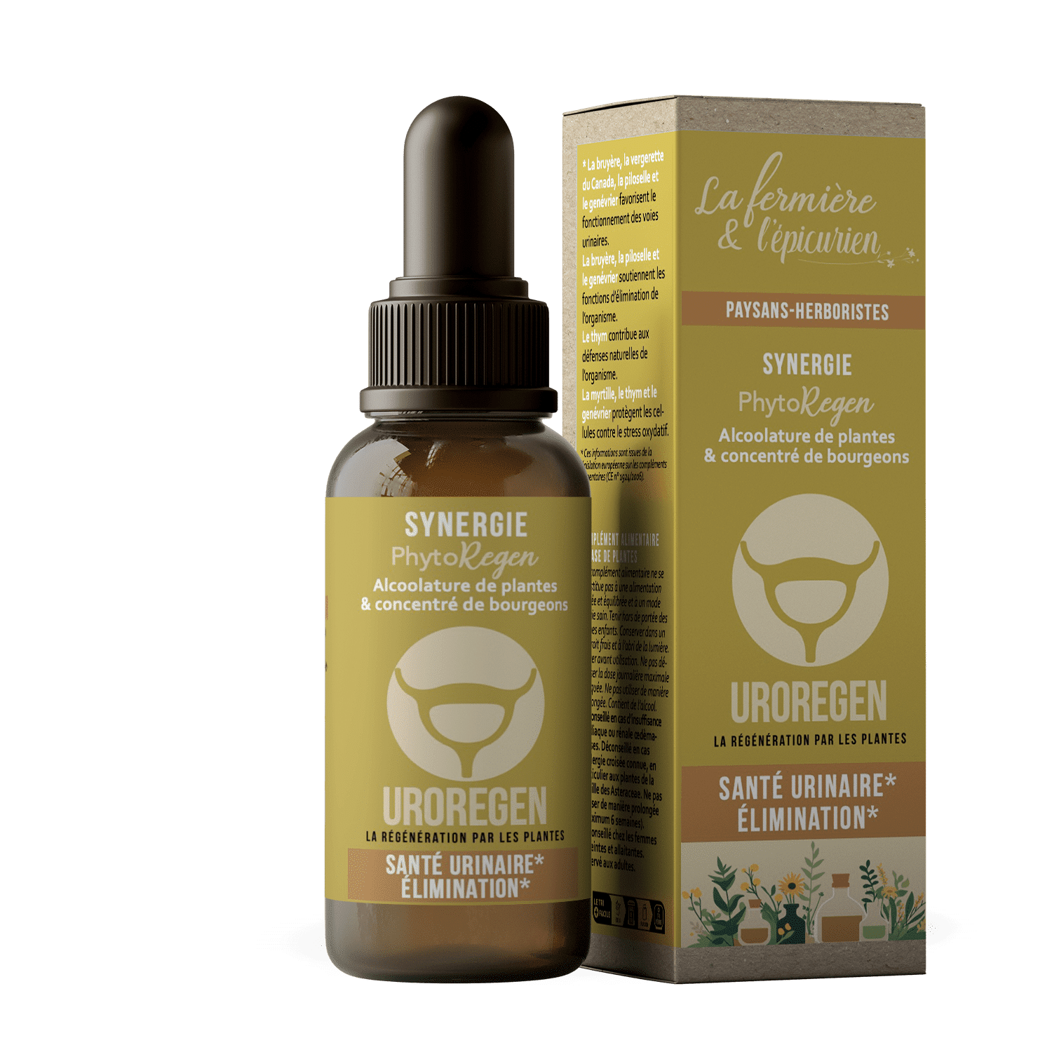 Ce mélange combine les alcoolatures de bruyère, de vergerette du Canada, de piloselle et de thym au macérat de jeunes pousses de genévrier. Il a été concocté pour favoriser le confort urinaire et soutenir les fonctions d’élimination de l’organisme.